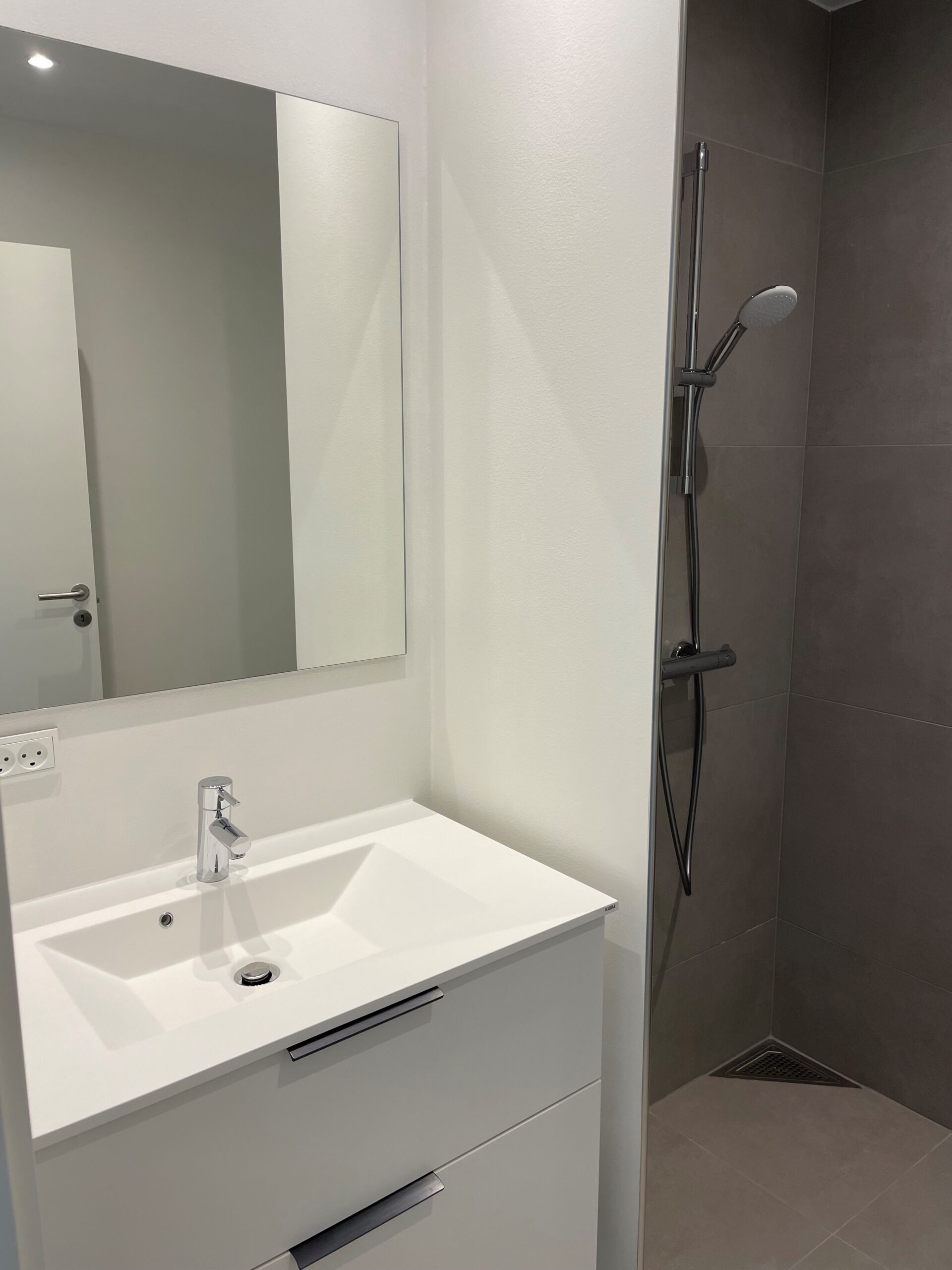 Boligerne er opført i lys, moderne stil. Her er hvidt inventar fra HTH, moderne grå klinker og laminat. Derudover er der en mindre have i forlængelse af huset, hvor der anlægges terrasse i private rammer.